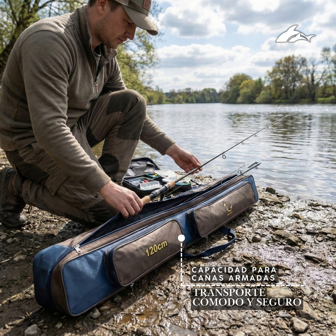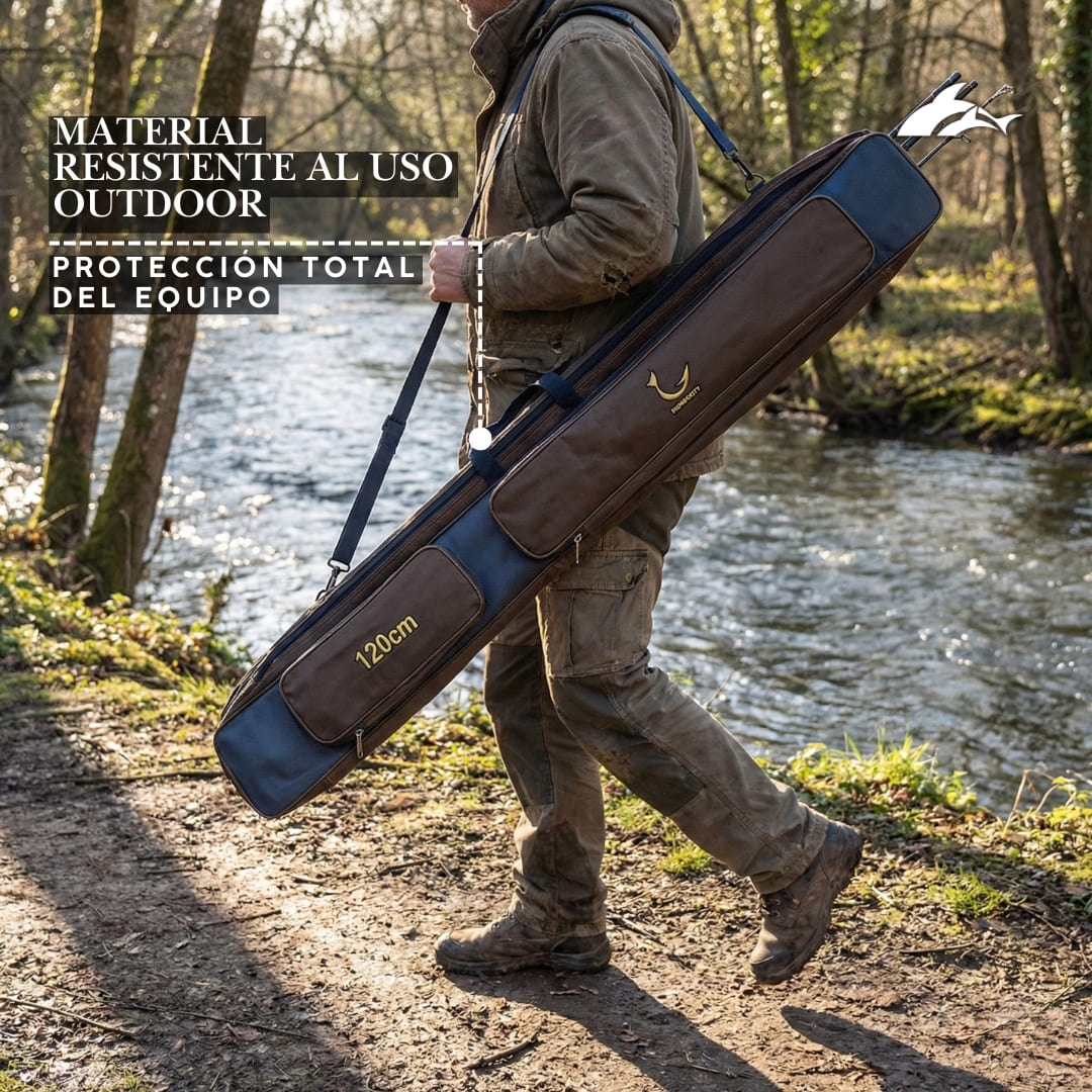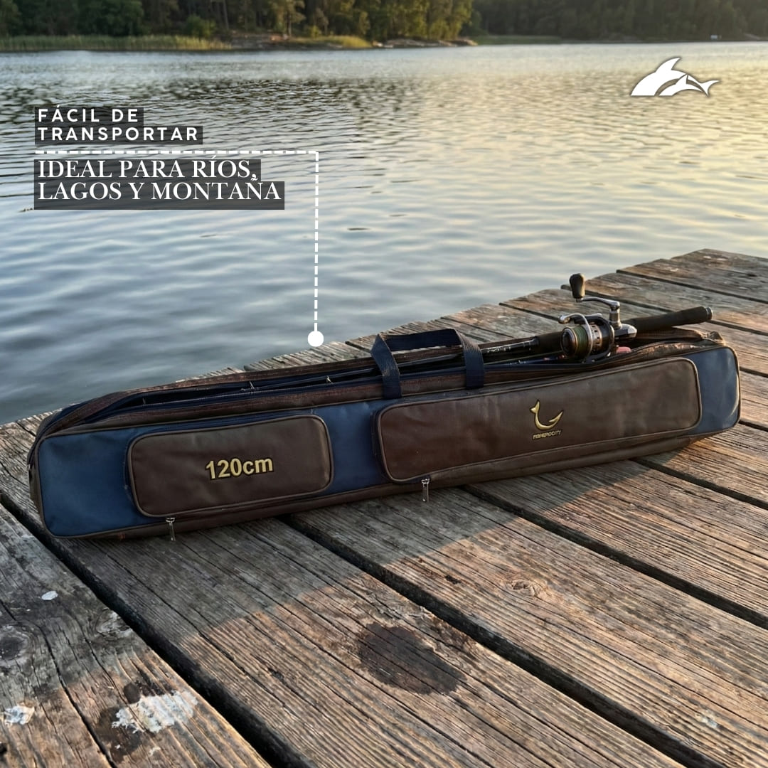 El portacañas 120 cm protege tus cañas armadas y facilita el transporte en ríos, lagos y muelles.