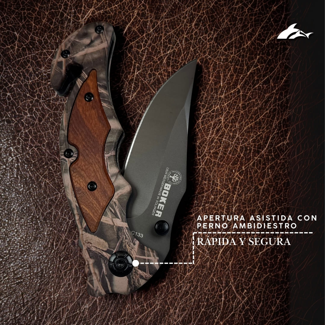 La Böker TrailBlazer es mucho más que una herramienta, es una pieza de colección diseñada para quienes valoran la fuerza, el estilo y la precisión en cada detalle. Su diseño combina elegancia y funcionalidad, convirtiéndola en el compañero ideal de aventuras, el regalo exclusivo perfecto o la pieza que dará inicio a una colección única.