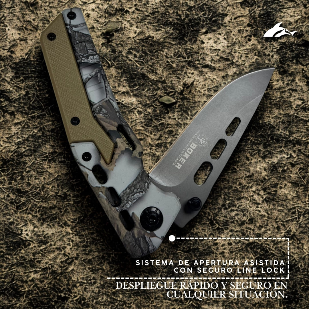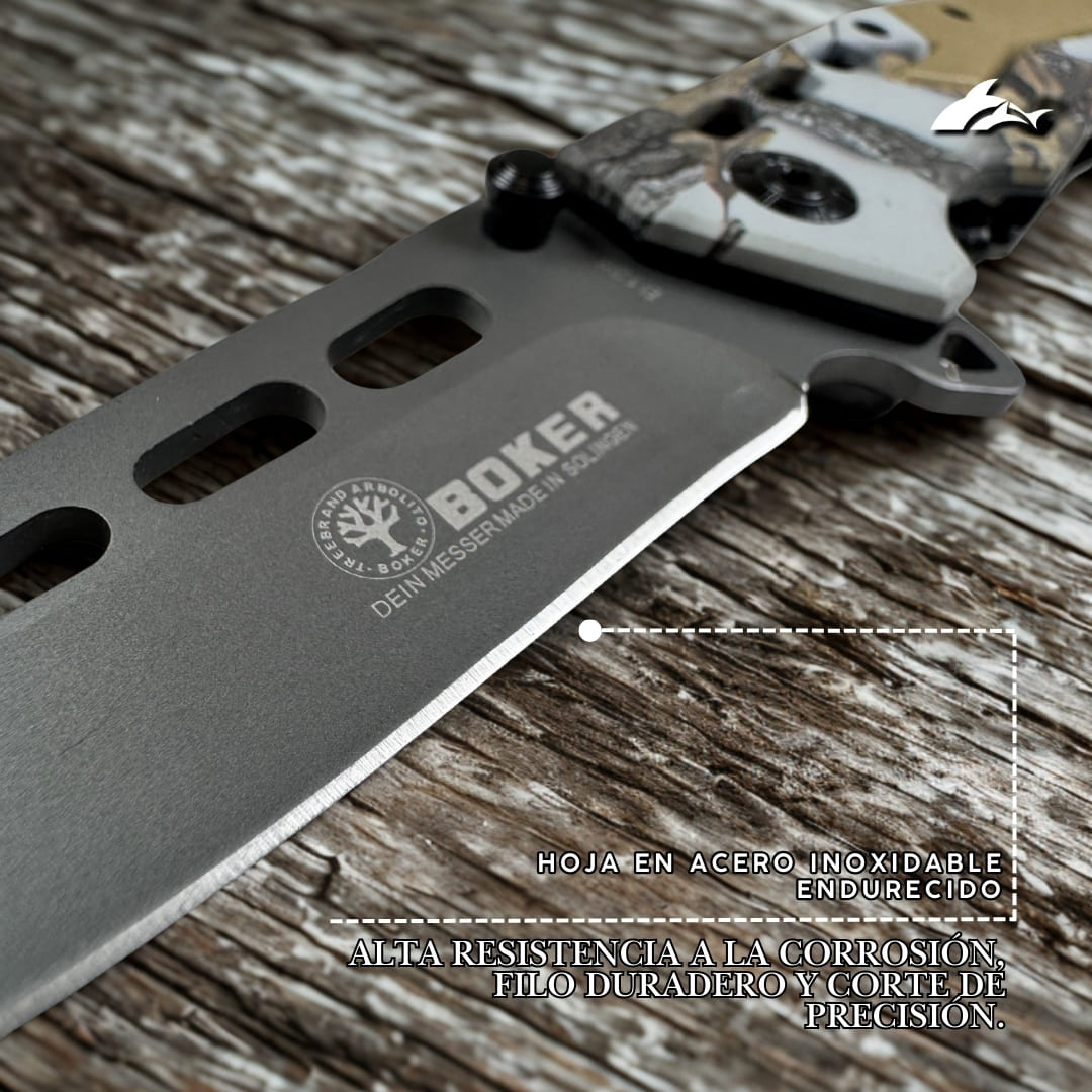 La Böker Desert Fang está pensada para resistir y destacar en cualquier expedición. Su diseño robusto y preciso la convierte en el compañero perfecto para exploradores y aventureros que buscan confianza, fuerza y estilo en cada detalle.